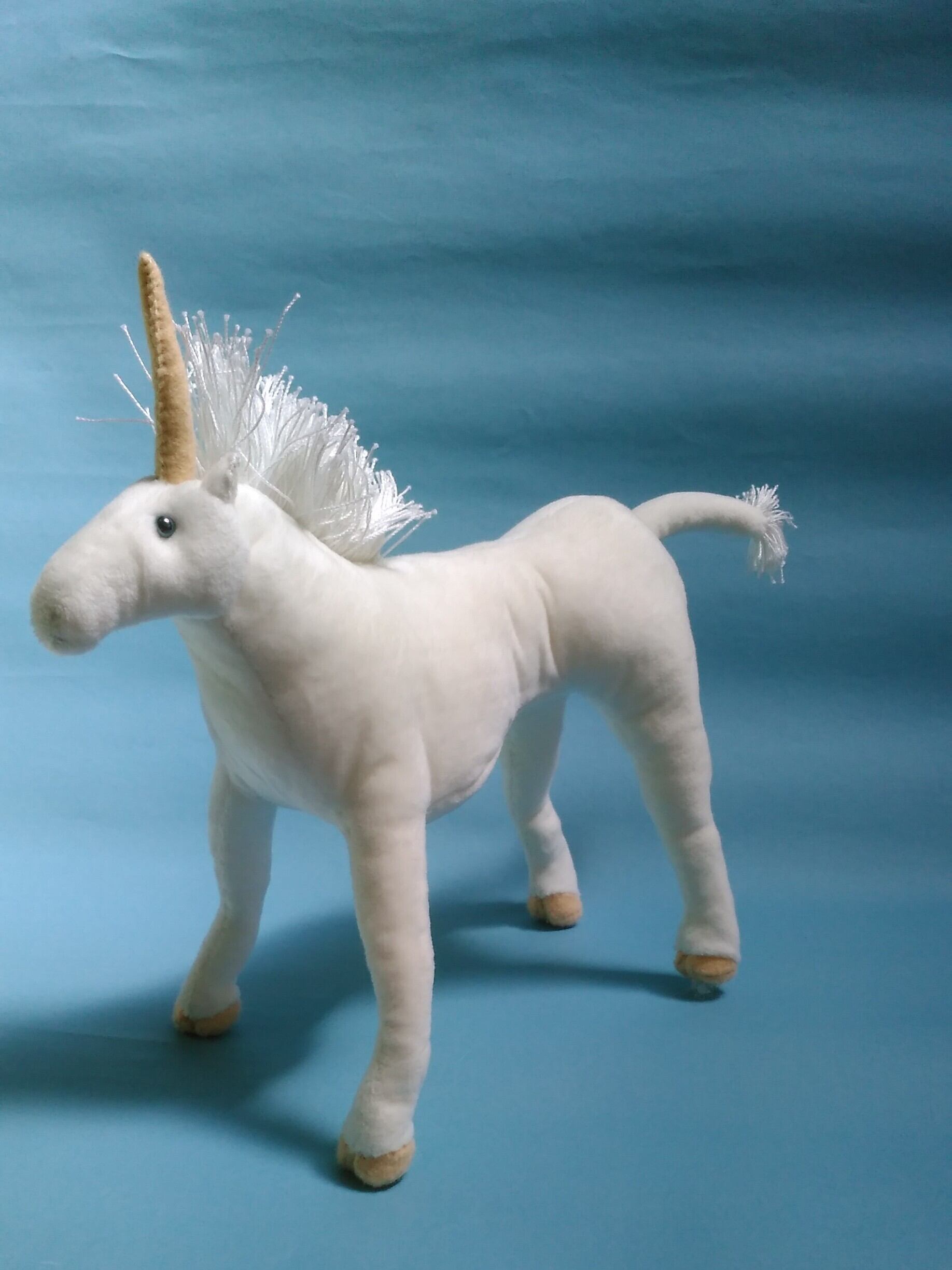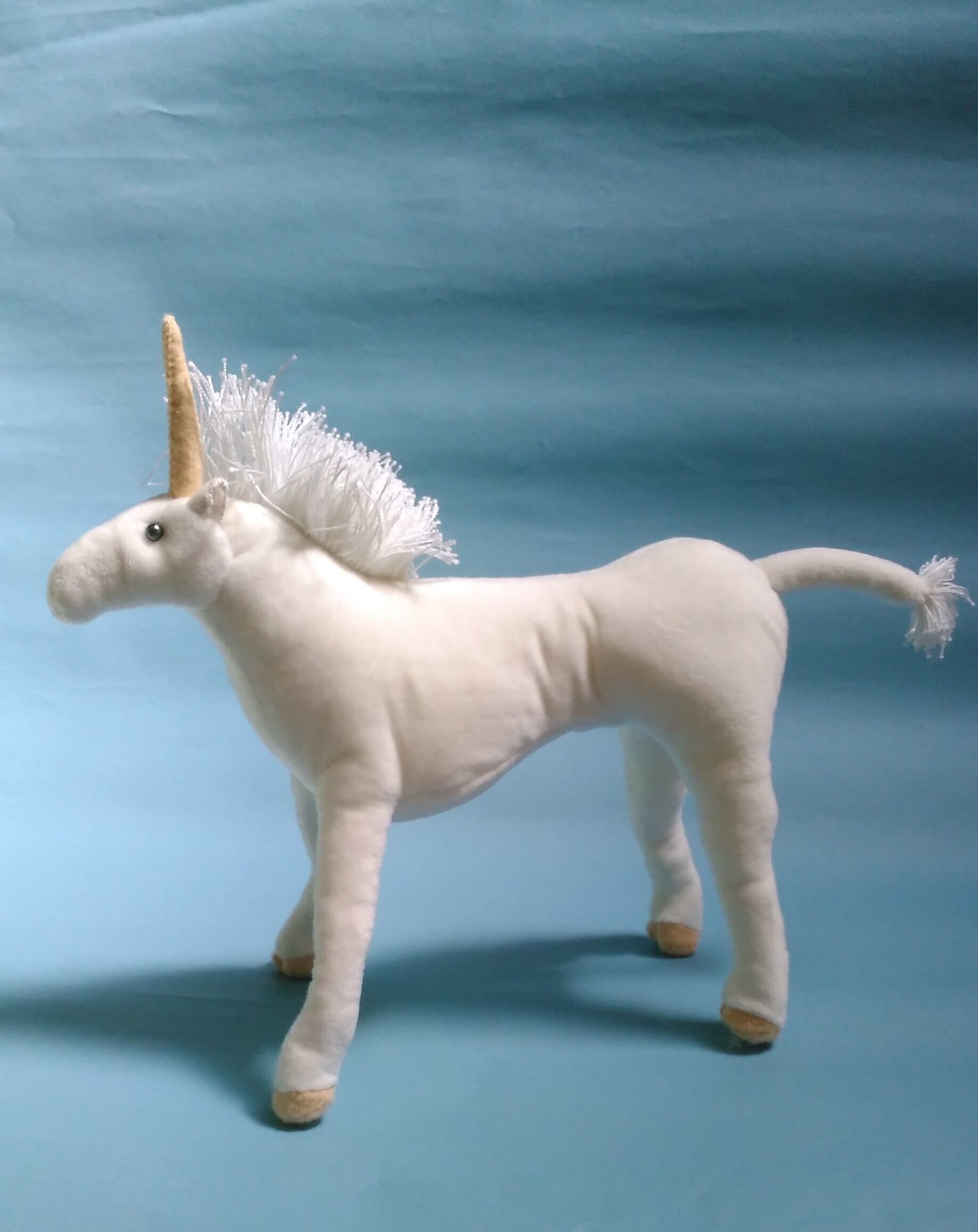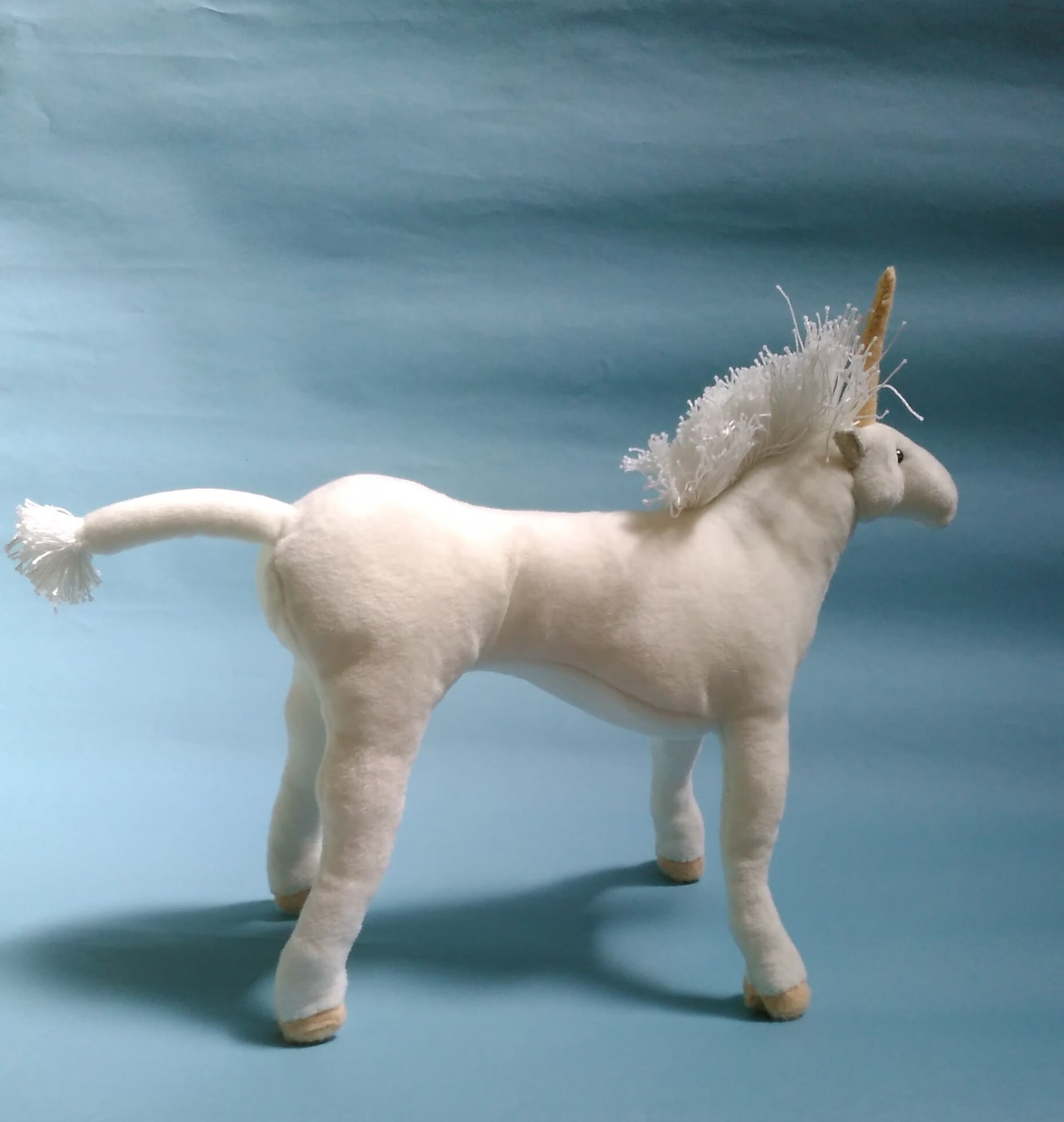 サンプル画像のユニコーンと、ウマのぬいぐるみ(サラブレッドタイプ)の型紙になります。